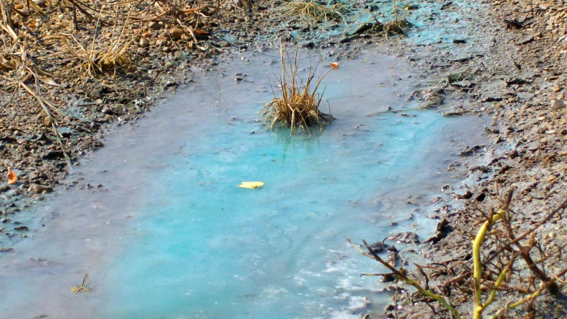 Water Leak Published May 6, 2016 at 1920 × 1080 in Water Leak Blue, green, and red tinted water flowed from the slag pile to Lake DePue.